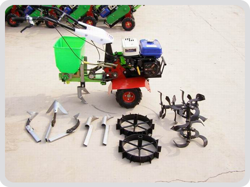本機可以配的農具有:播種施肥耬、除草輪、耘鋤、旋耕機等。